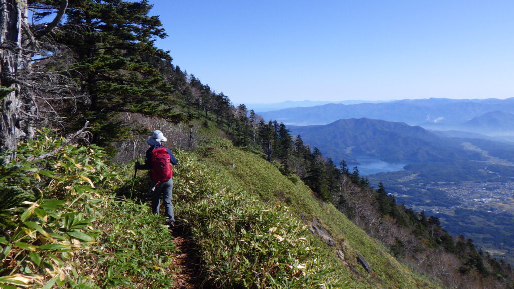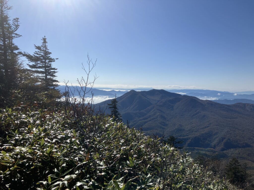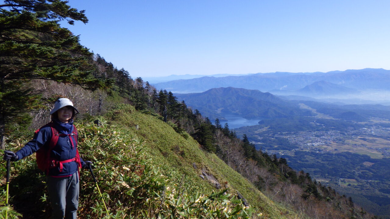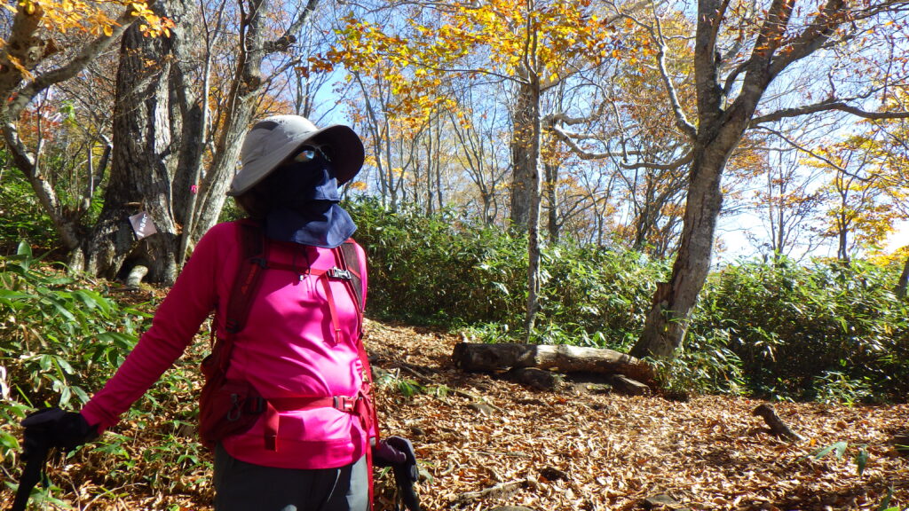 静かな山歩きがしたくて平日を狙ったけど、登山口で10人近い団体登山者に鉢合わせしてしまい、一気に抜き去る作戦でぜーぜー言いながら稜線近くまで飛ばす。