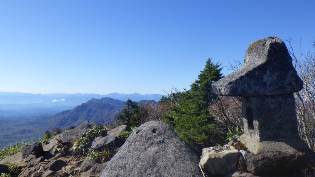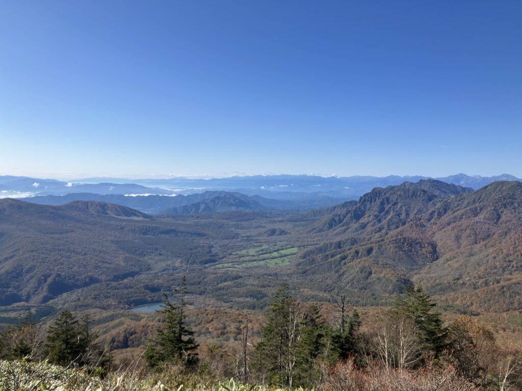 快晴で稜線あたりからは槍ヶ岳から白馬あたりまでが一望できた。