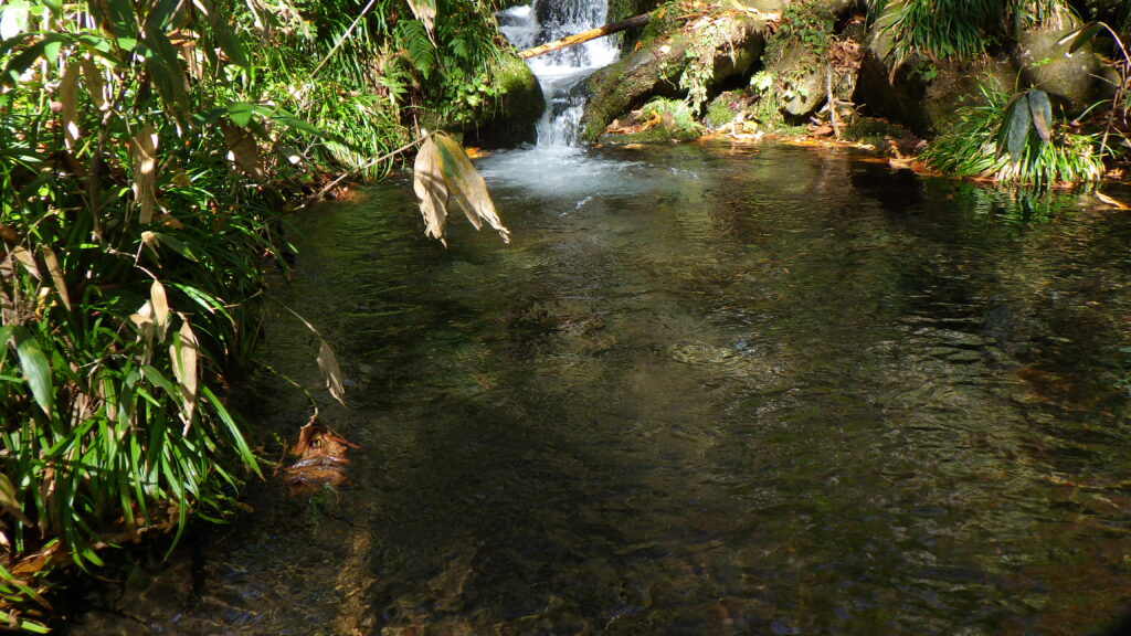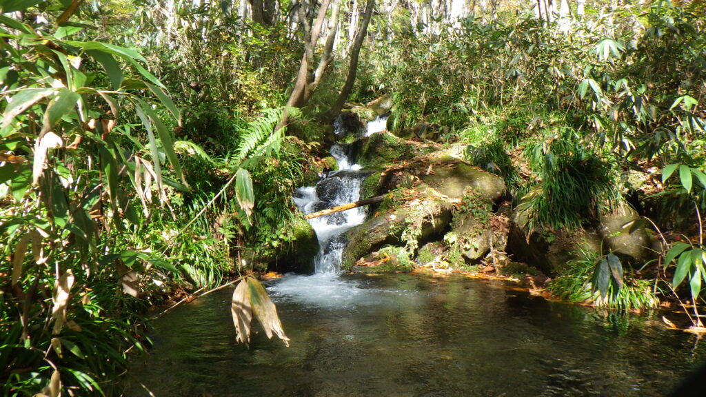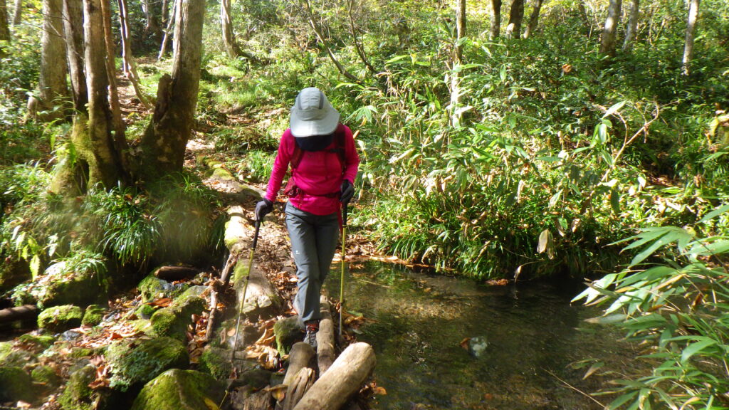 下降は古池をまわるコース。沢に出会うともうすぐ古池。
