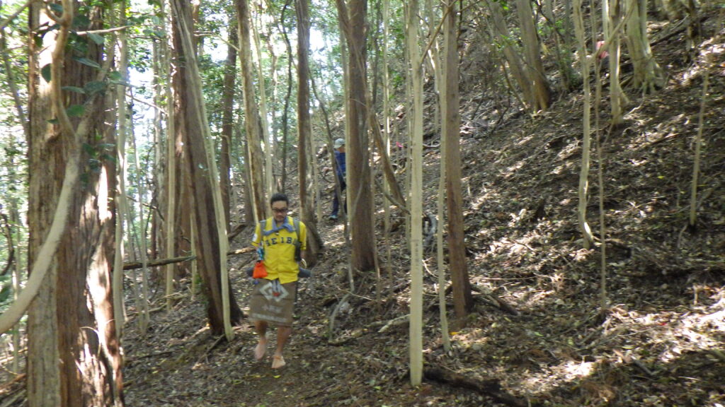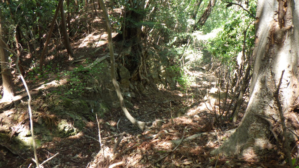 浄福寺寺址(千手山山頂)から西に急な斜面をおりる。