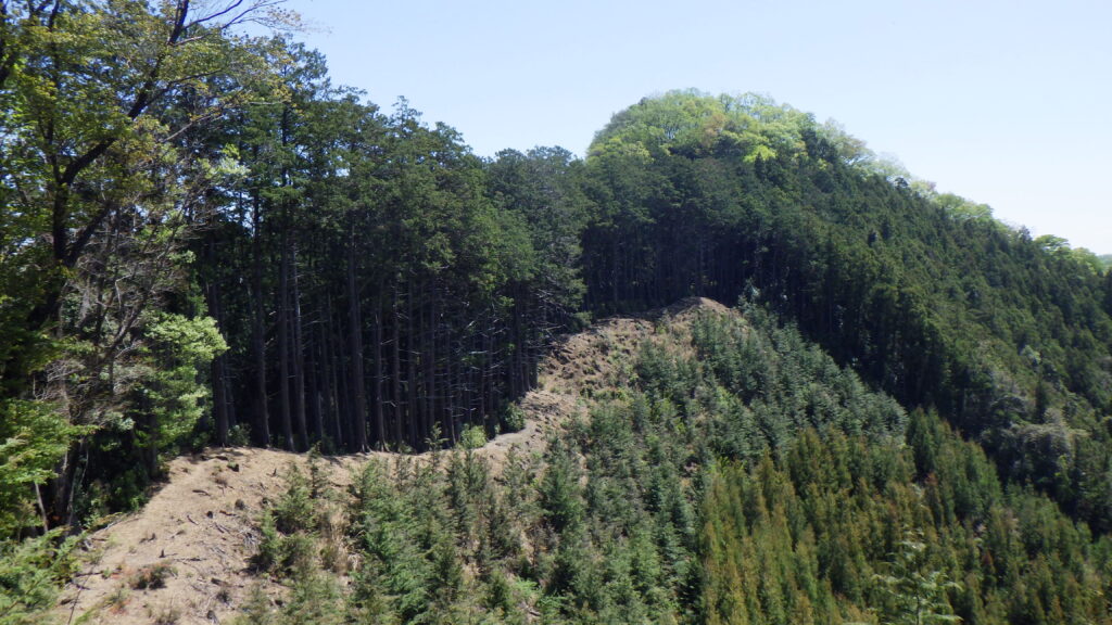 10分ほど歩くと樹林が刈られて視界の開けたピーク。