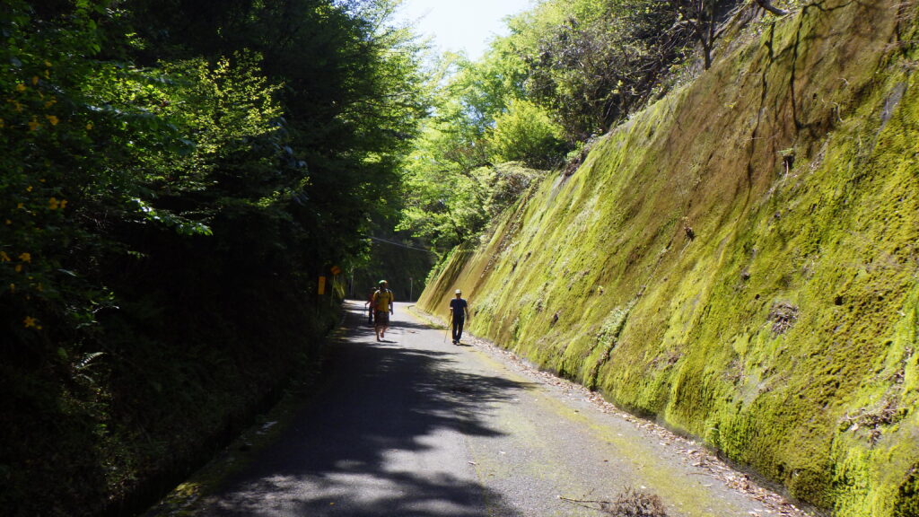 林道の向こう側も擁壁。迷いながら林道を右に。
